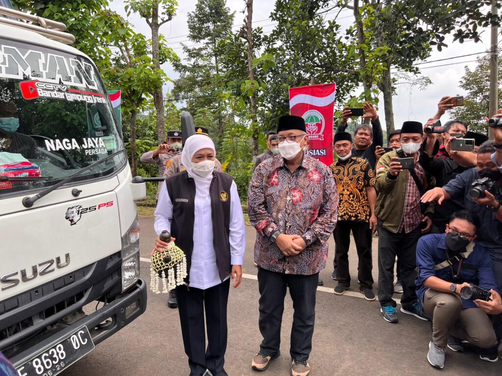 SUARAUMKM, Jombang – Pelepasan perdana 12 ton kopi Excelsa komoditas khas Wonosalam oleh Gubernur Khofifah di depan Kantor Koperasi Wonosalam Jombang, Selasa Siang (10/5/2022).