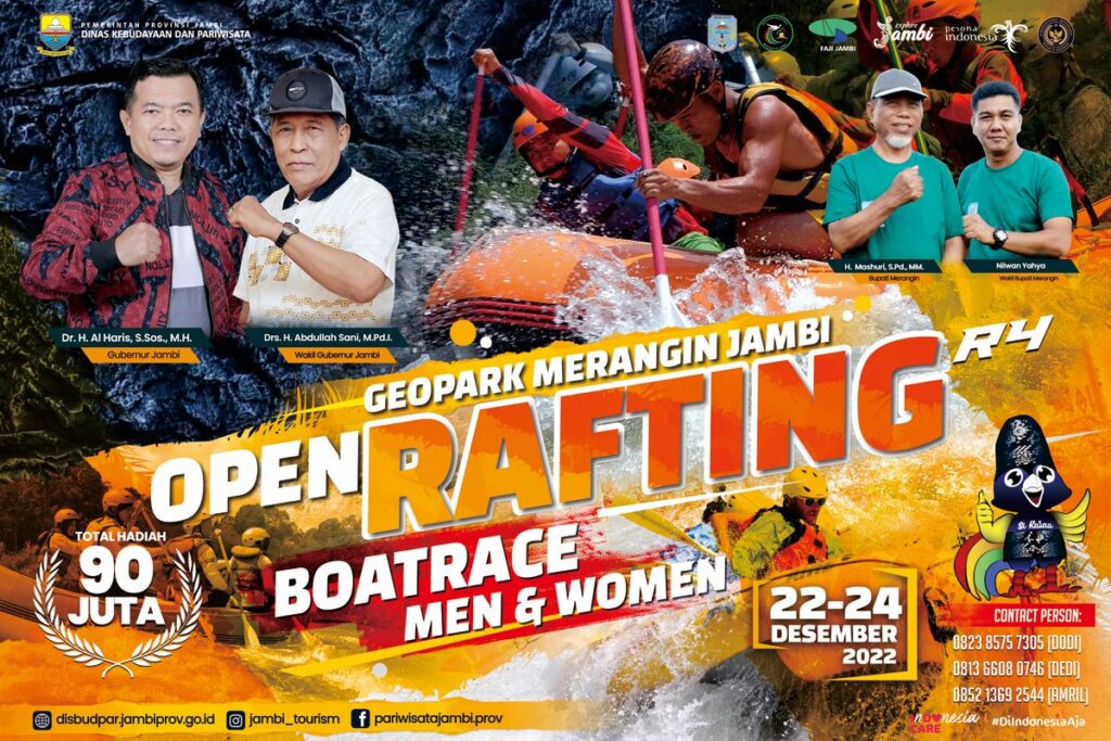 “Open Rafting Boat Race ini akan diselenggarakan di Geopark Merangin Jambi. Tempat yang sungguh indah. Destinasi ini juga akan kita angkat dan perkenalkan ke wisatawan,” paparnya.