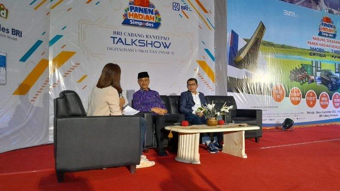 Pemimpin BRI Branch Office Rantepao, Wawan Indarno dan Asisten 2 Pemda Tana Toraja, Bonifasius Paundanan dalam talk show ‘Digitalisasi UMKM dan Pasar ID’ Panen Hadiah Simpedes, Sabtu (27/5/2023)