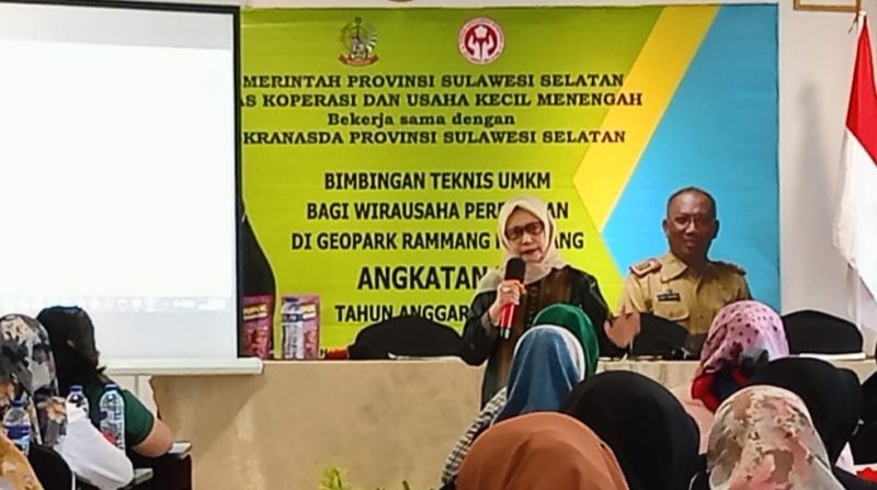 SuaraUMKM, Jakarta – Dinas Koperasi dan UKM Sulawesi Selatan (Sulsel) bersama Dewan Kerajinan Nasional Daerah (Dekranasda) Sulsel memberikan bimbingan teknis (bimtek) kepada 160 pelaku UMKM perempuan yang bermukim di Geopark Maros Pangkep di site Rammang-Rammang, Kabupaten Maros.