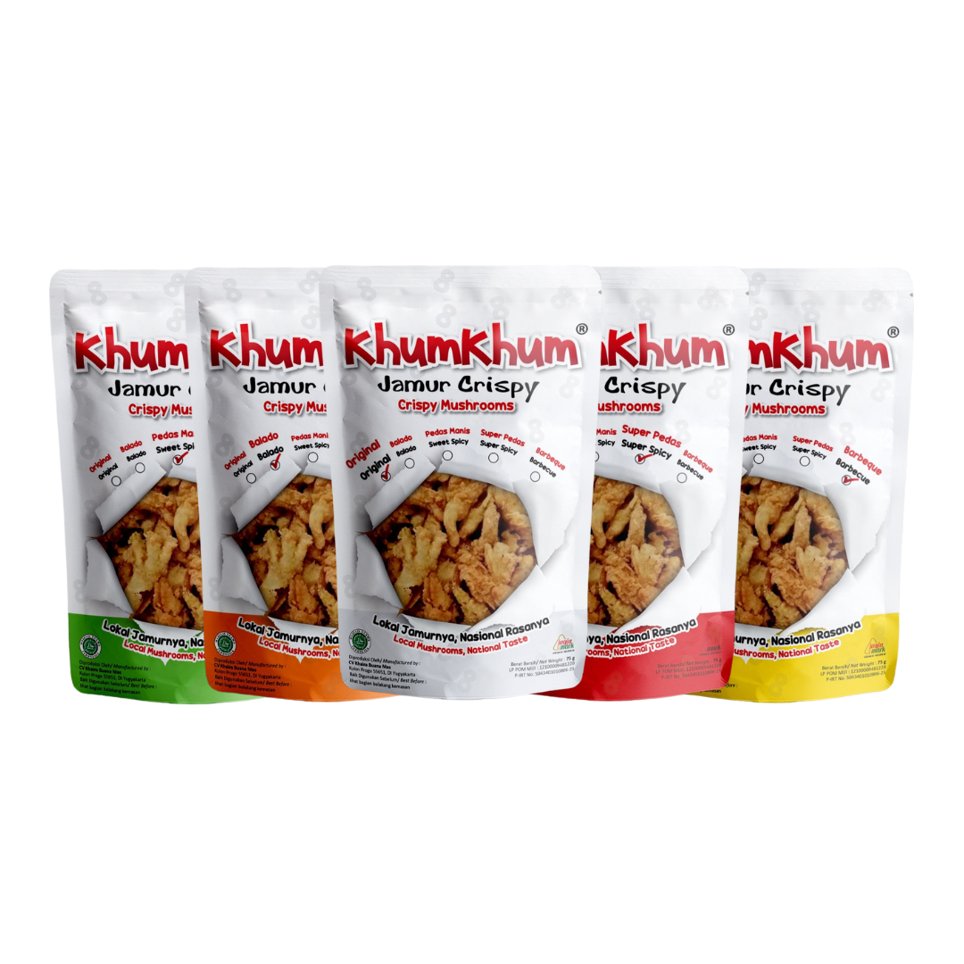 Berbasis di Kabupaten Kulon Progo, Yogyakarta, KhumKhum bukan sekadar pelaku usaha camilan. Ia adalah gerakan kecil yang menjembatani petani, ibu rumah tangga, dan pasar modern. Produk unggulannya, Keripik Jamur Tiram, digoreng tanpa pengawet, dengan proses higienis dan standar kualitas tinggi. Rasanya gurih alami, renyah, dan menggugah selera — menyatu sempurna antara rasa lokal dan kemasan modern.