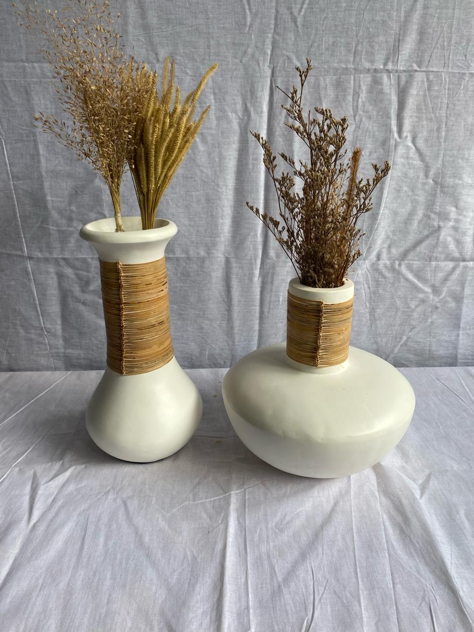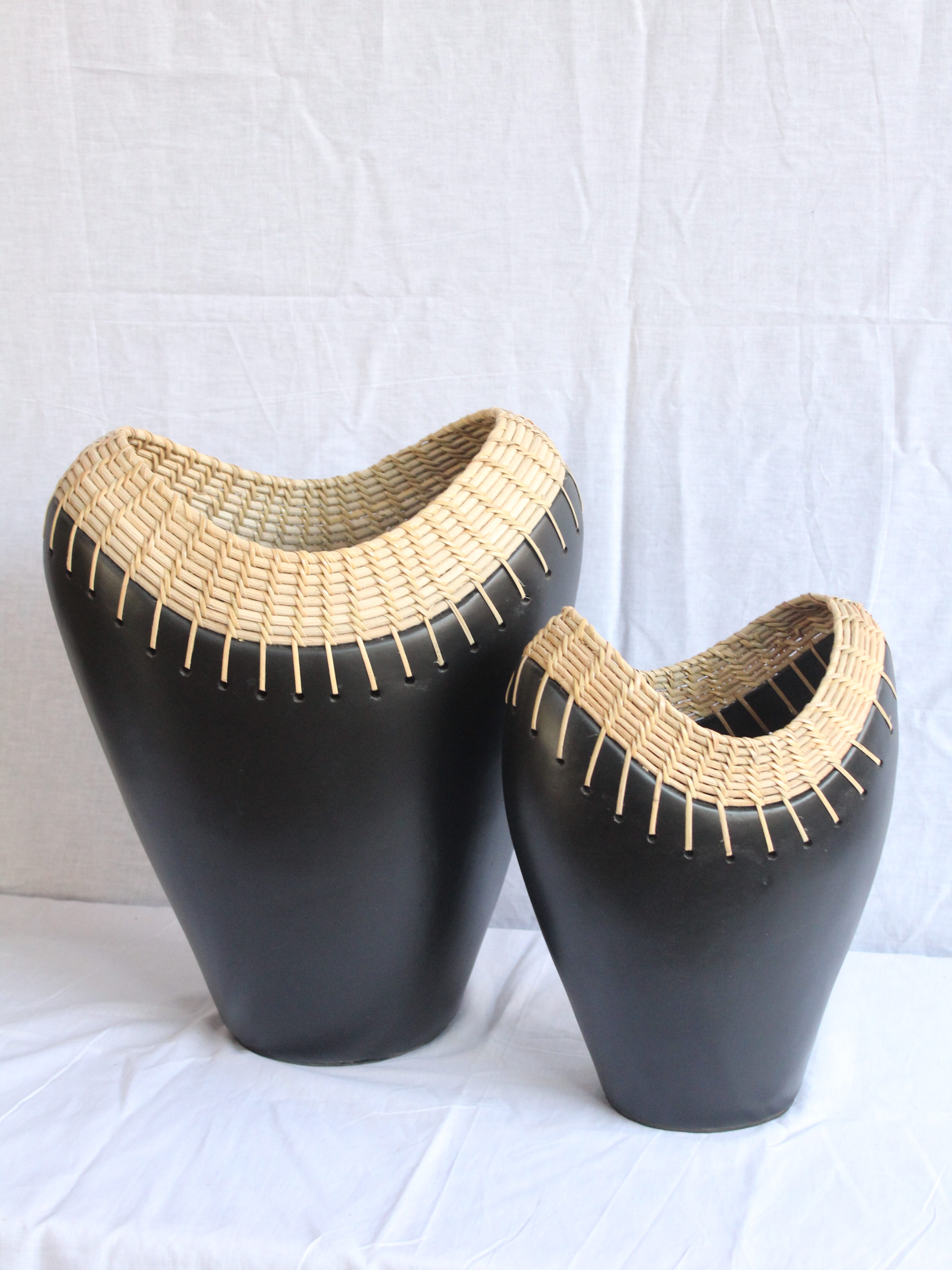 • Gerabah kombinasi anyaman rotan dan serat alam